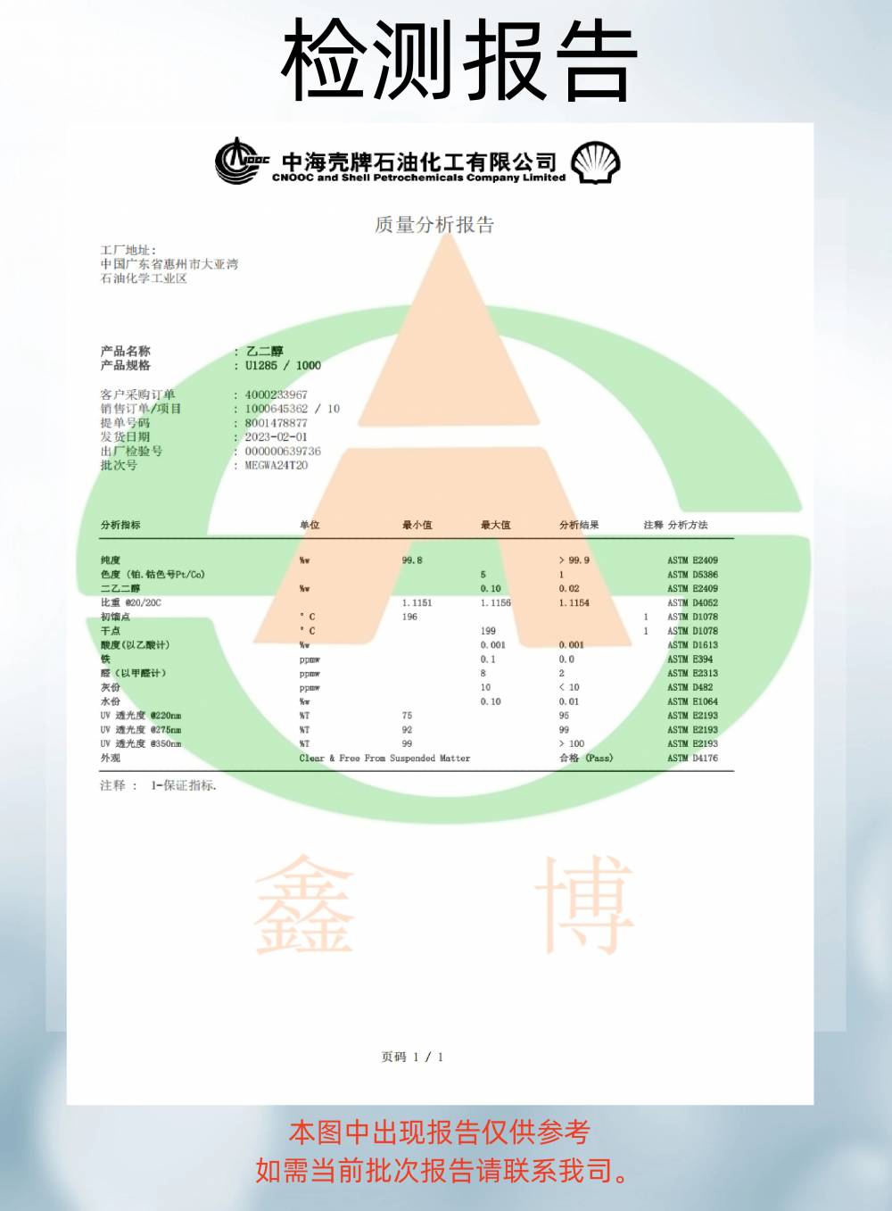 中海油壳牌 纯度(99.9%)乙二醇 脂肪族二元醇 防冻液 合成涤纶原料